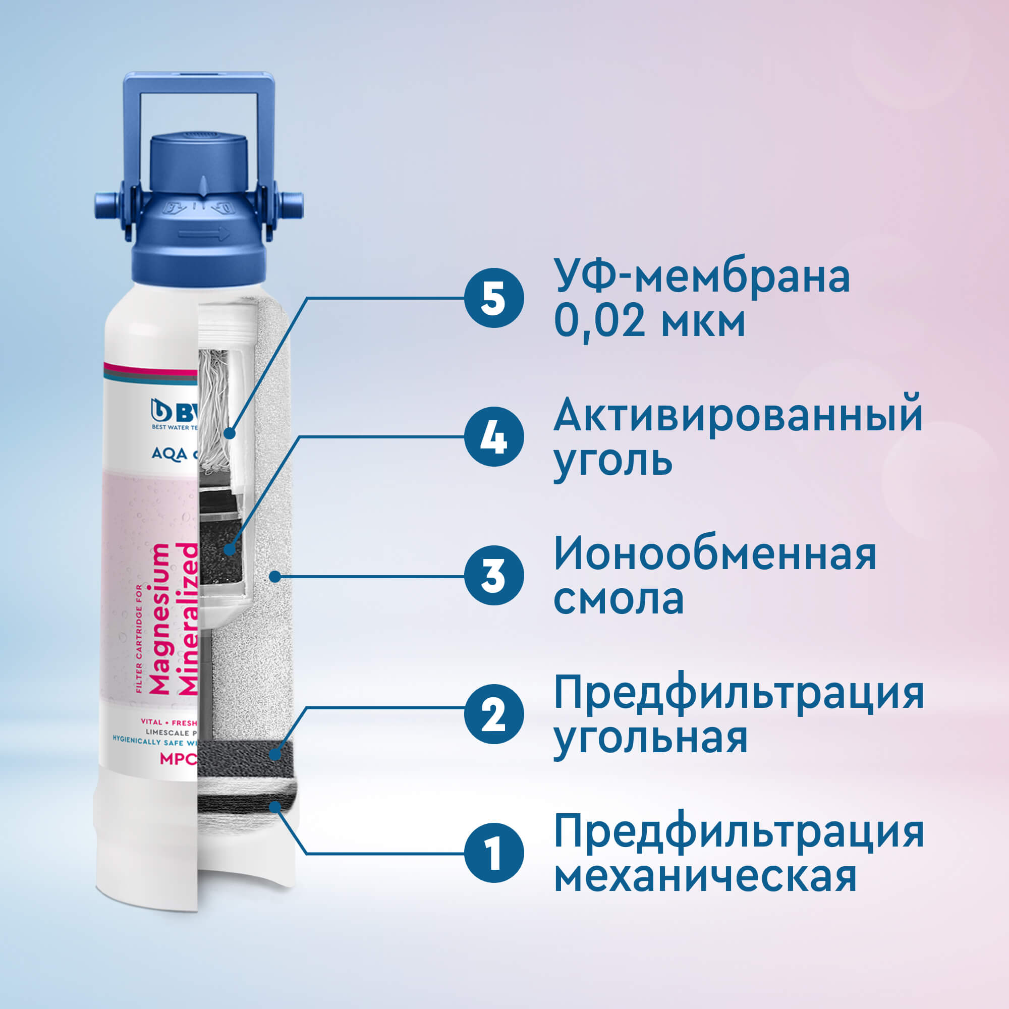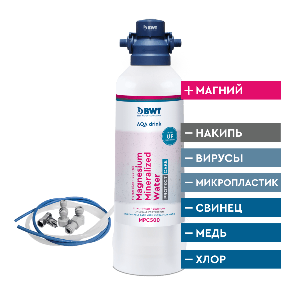 1. Фильтр BWT MPC - фильтр доочистки питьевой воды с ультратонкой мембраной 0,02 мкм, благодаря которой происходит удаление таких мельчайших частиц как вирусы, бактерии и микропластик. С опцией умягчения воды.