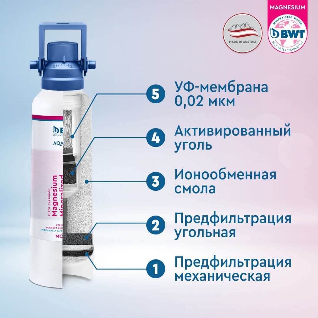 1. Фильтр BWT MCS400 - фильтр для доочистки питьевой воды, защита от бактерий, вирусов и микропластика с одновременным обогащением воды магнием.