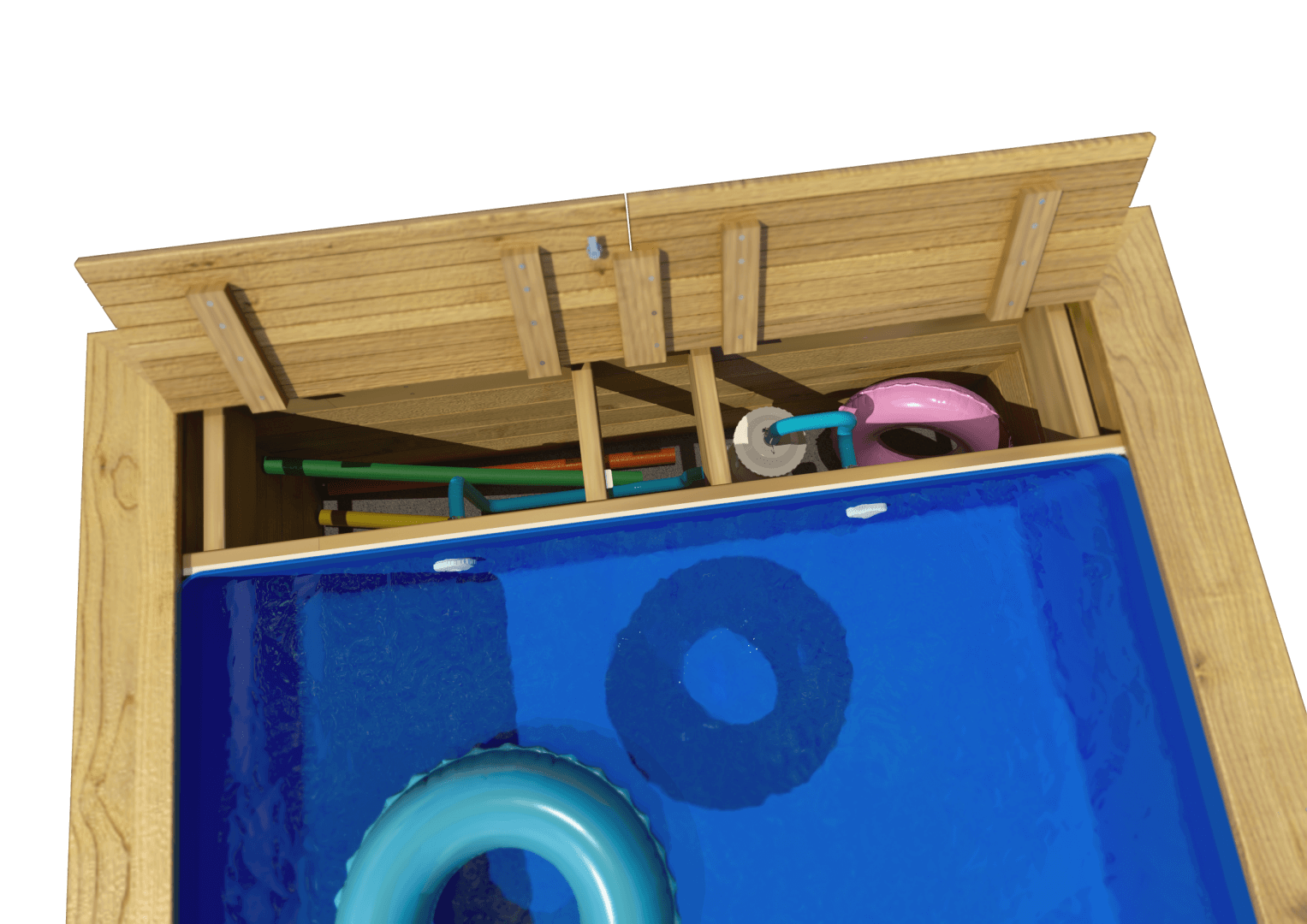 POOL’N BOX JUNIOR продуман до мелочей, с удобным ящиком для хранения, который расположен под бортиком. Фильтр, робот-пылесос для бассейна, мячи, игрушки для детей можно теперь спрятать.