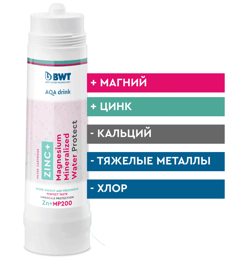 Вода из фильтра BWT с цинком и магнием гарантирует мягкое высвобождение цинка в течение всего дня по сравнению с пищевой добавкой в виде таблетки с высокой концентрацией.